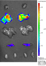 Bioluminescence measurements to investigate reporter gene ex vivo expression after Luc-mRNA-LNPs injection in mice